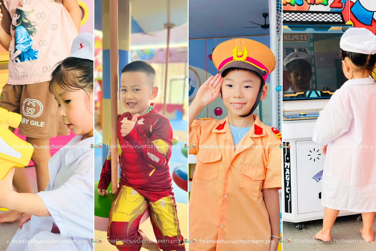Muôn loại trò chơi kích thích trí sáng tạo của bé ở khu hướng nghiệp nấu ăn, bác sĩ, lính cứu hỏa,… với trang phục để bé có thể tự do “nhập vai”. Hồ hạt, khu máy game mini sẽ cho các tài năng nhí không gian trổ tài.